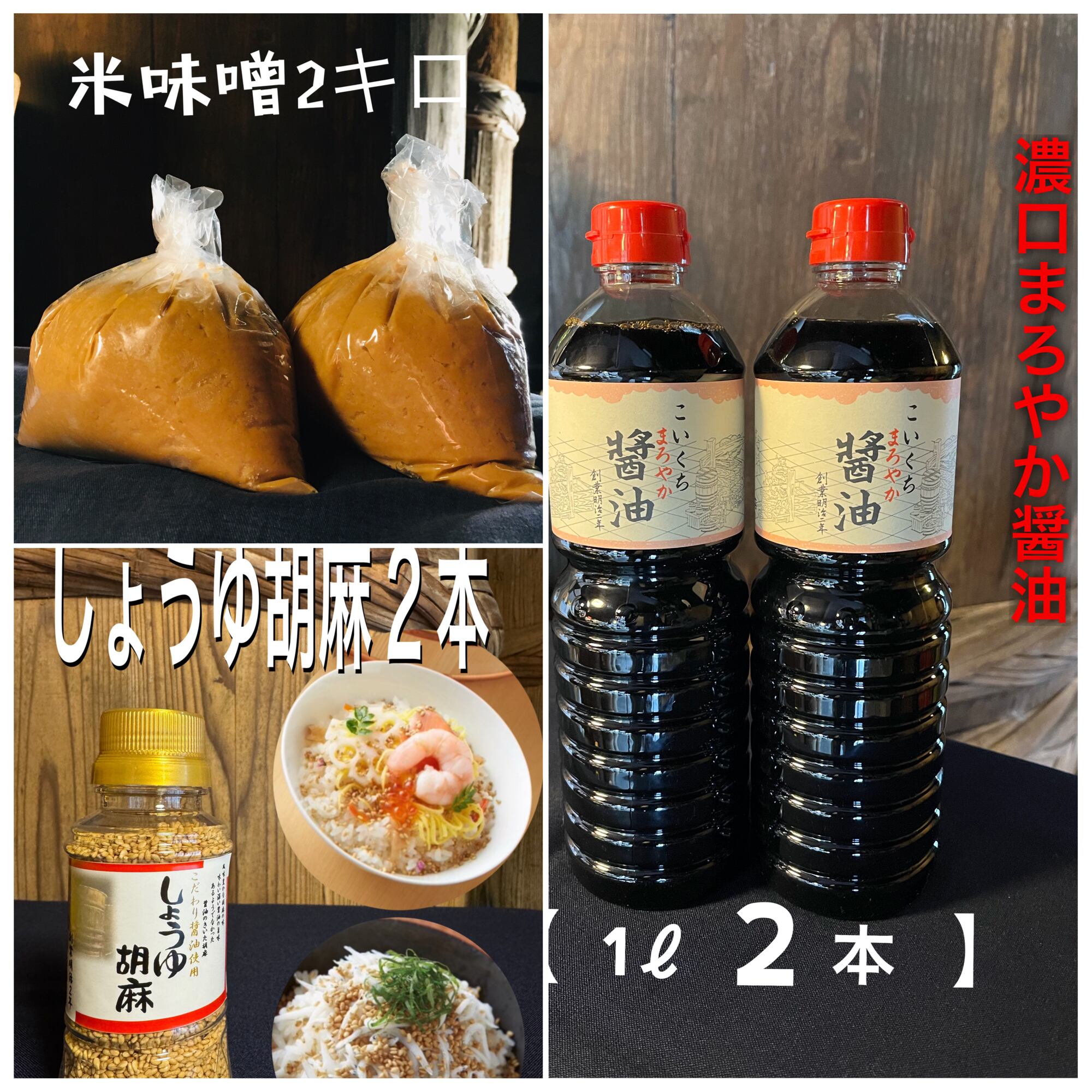 鍋庄商店 まろやか醤油・しょうゆ胡麻・味噌 各2個セット