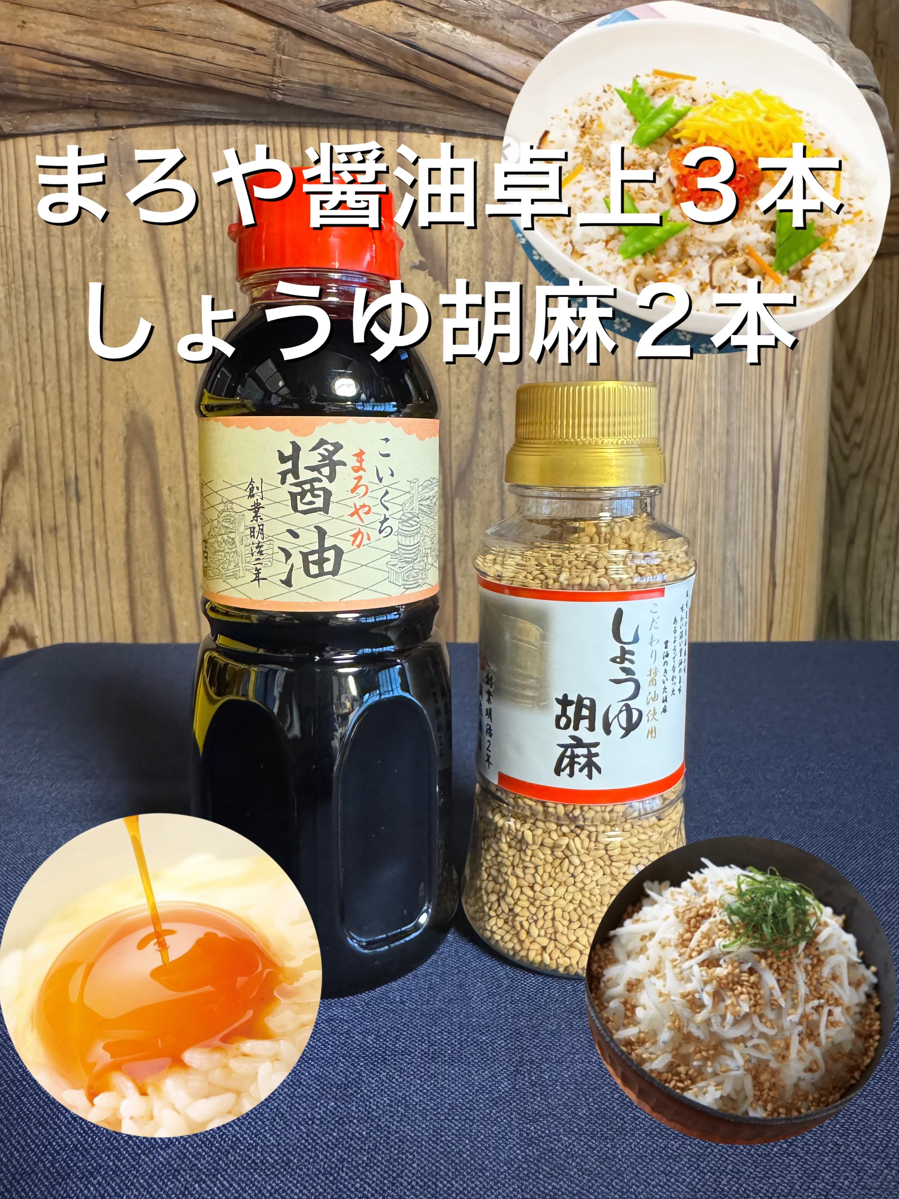 こちらの商品は、まろやか醤油卓上300ml3本としょうゆ胡麻2本の人気2商品セットになります。