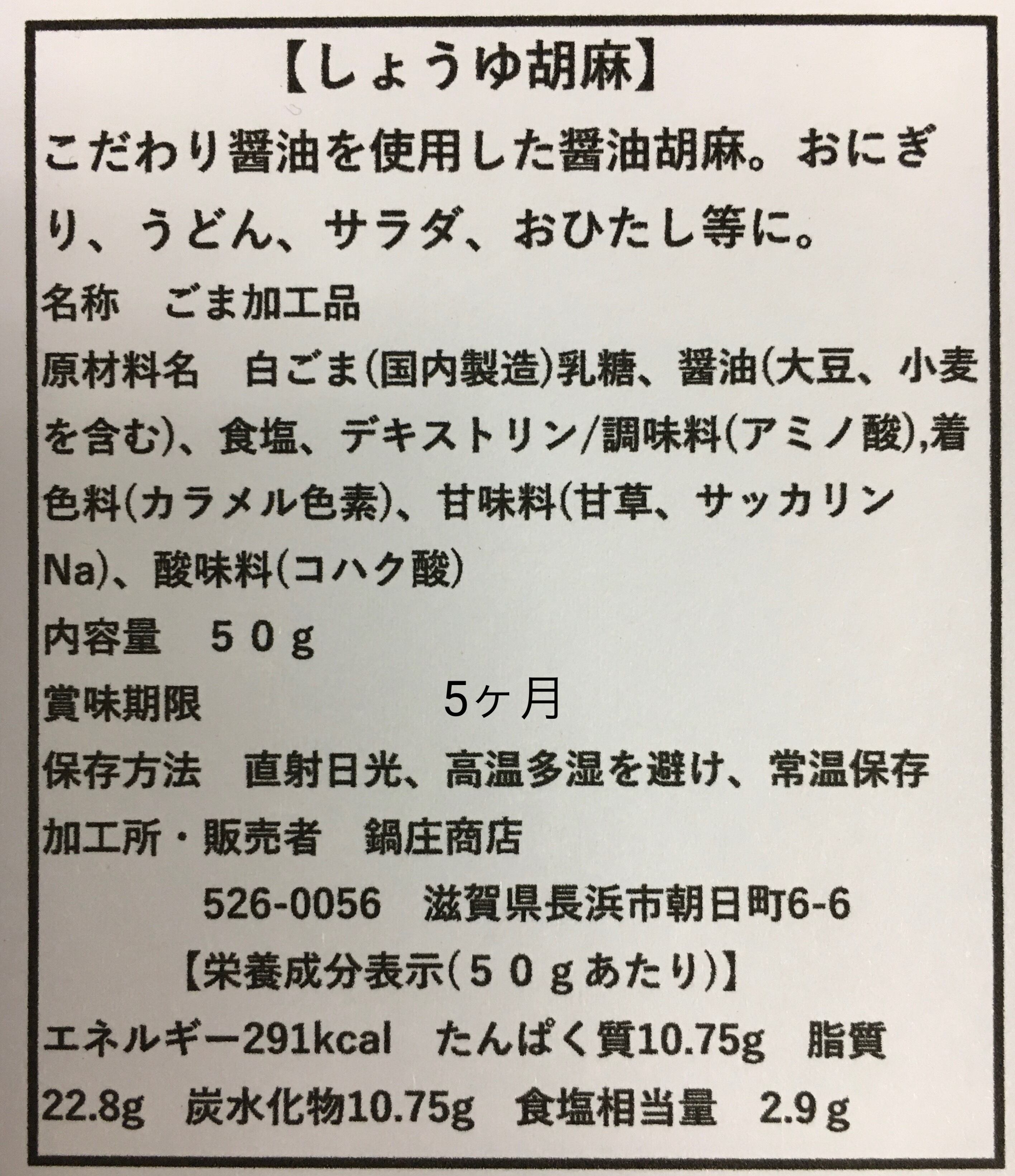 鍋庄商店 しょうゆ胡麻40g 3袋セット