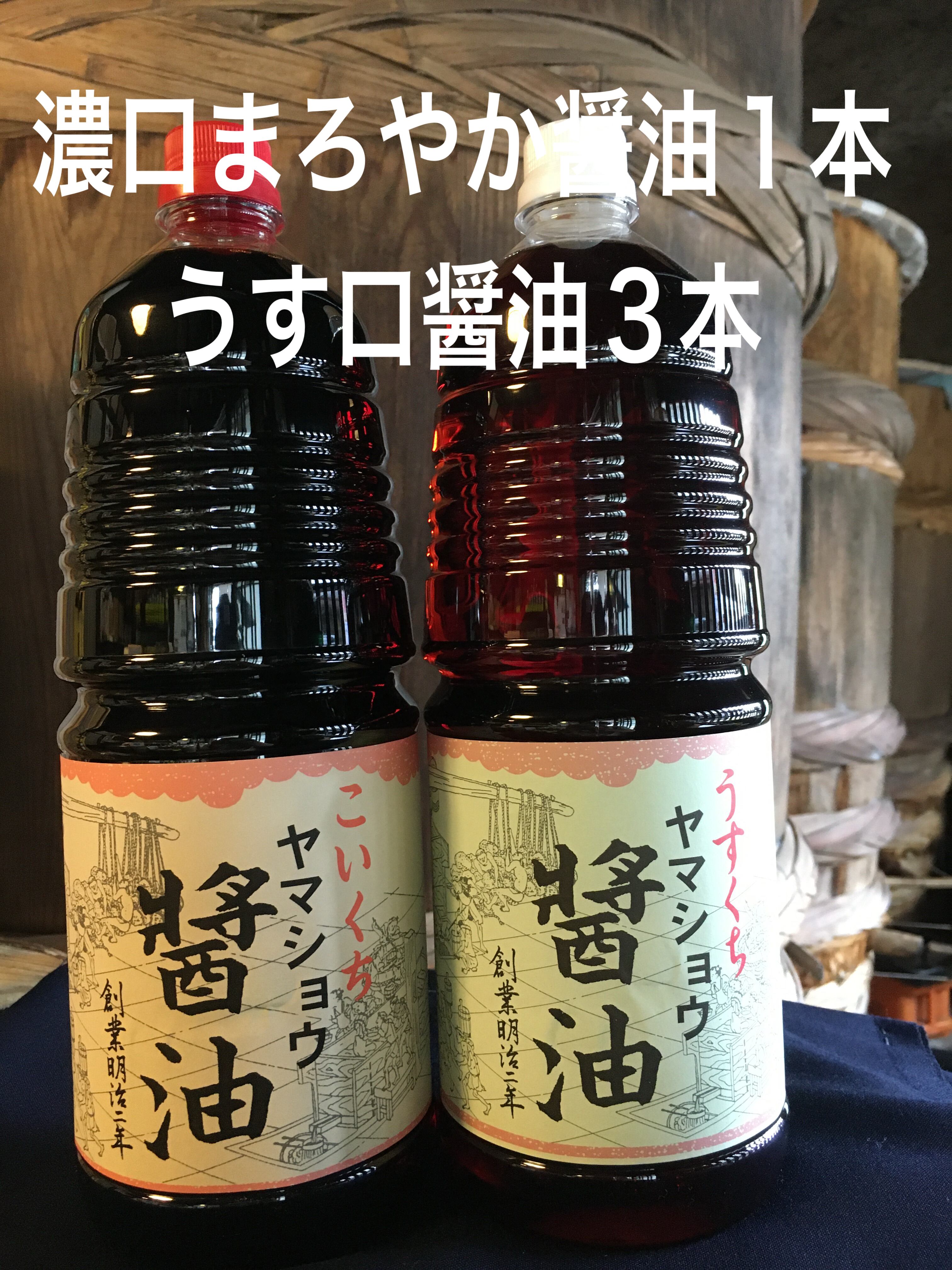 鍋庄商店 お客様希望商品 まろやか醤油1本・うす口醤油3本